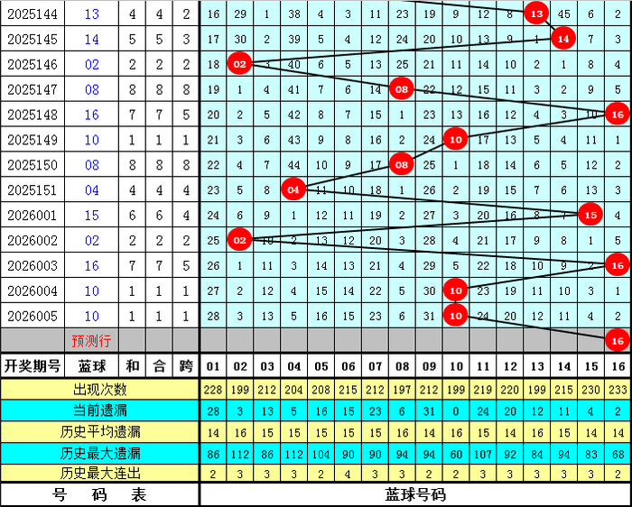 蓝球五码参考:02 06 08 10 16