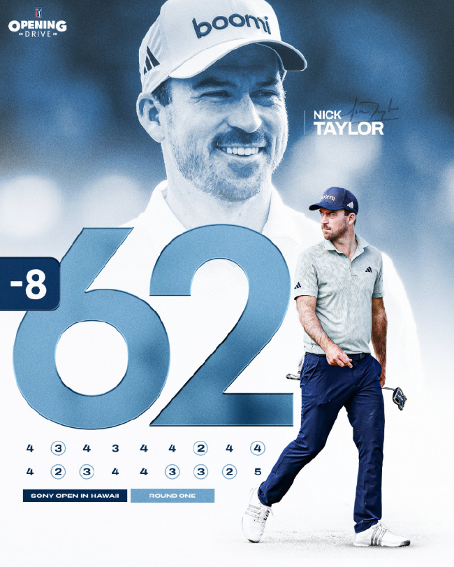 北京时间1月16日,卫冕冠军尼克·泰勒在瓦伊莱乡村俱乐部(Waialae Country Club)展现出精准的铁杆技术,巧妙应对三杆洞,打出62杆,低于标准杆8杆,在美巡2026赛季于索尼公开赛启动之时,与凯文·罗伊(Kevin Roy)共同领先首轮。